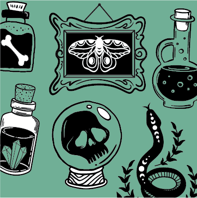 What does it take to make magic happen? These socks are based on a mysterious shopping list that disintegrated in a puff of smoke after we read it. We've got potions, poisons, serpents, crystals, divination and scrying tools and even more enchanting items in a minty field (get it?). It's like we've opened a witch's mystic kitchen cabinet and all these iconic implements tumbled out on a background of viridian venom. What are you planning to do with all this stuff? Actually, forget we asked. ------ Sock Specs: * Combed Cotton/Nylon/Spandex for breathability, durability, and stretch * DOUBLE TERRY in the heel and toe area adds durability and comfort where most novelty sock brands fail. * 200N Thread Count for highest level of detail * 40 Gram Socks with smooth seams * No uncomfortable bumps in the toe area * One Size Fits Most Humans Size 6-13, may be snug on wider calves
