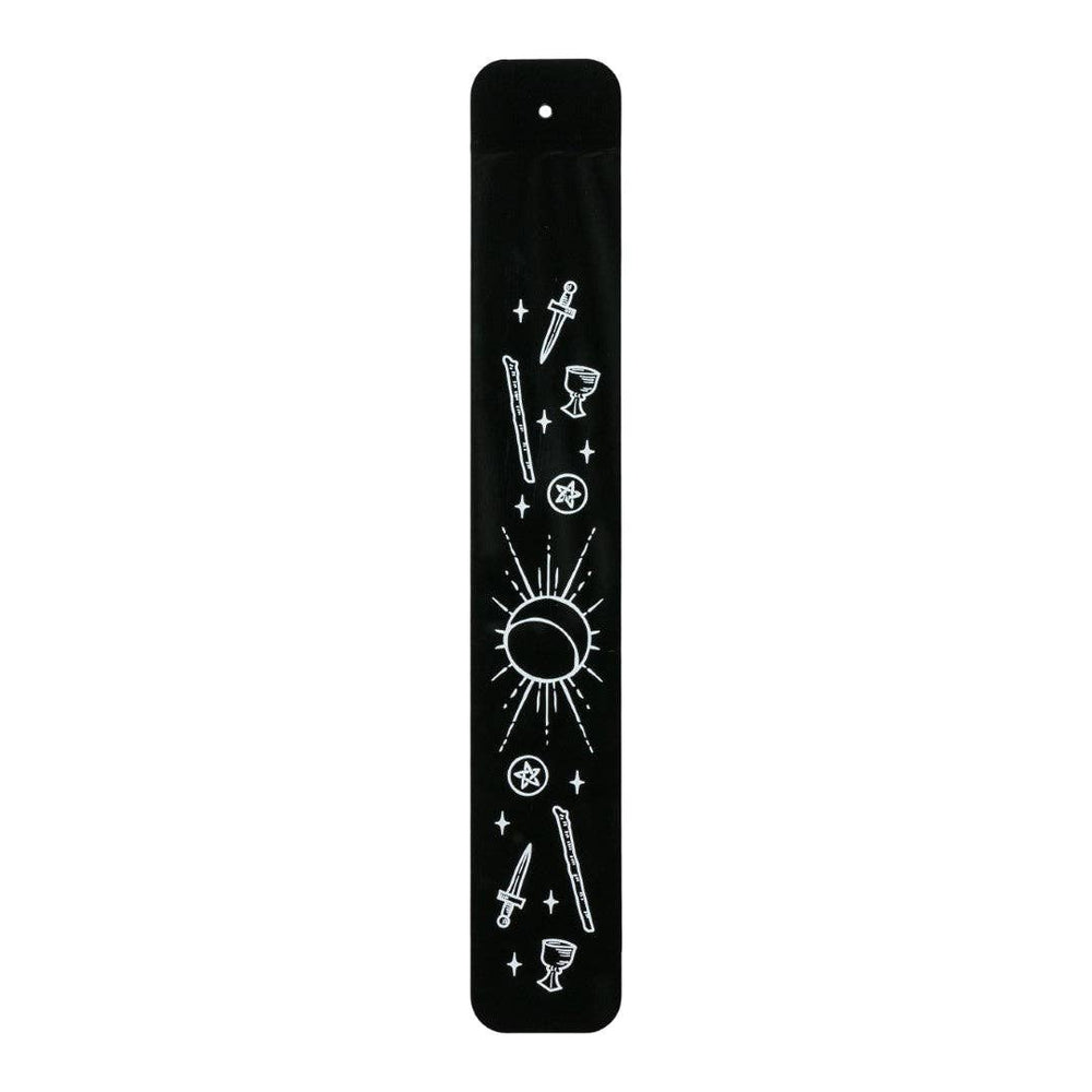 Incense already has a magical feel to it, so it makes sense to give it a magical home to live in while it serenely burns away. Our limited edition incense burner is decorated with symbols from our Tarot Nouveau line, such as swords, chalices, and wands. Besides their use in Tarot, these are all common occult symbols, so this incense burner isn't just for Tarot enthusiasts but for anyone who loves studying the esoteric... and wants to do it in a room that smells like their favorite incense. Holds a stick at the ideal angle for clean burning. Incense and actual fire not included.