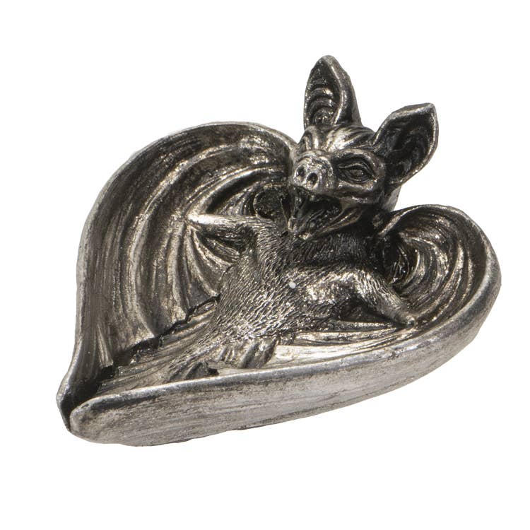 Gothic Bat Trinket Dish Product Size: 3.54" X 1.77" X 3.54" Material: Cold Cast Resin Case Pack: 48