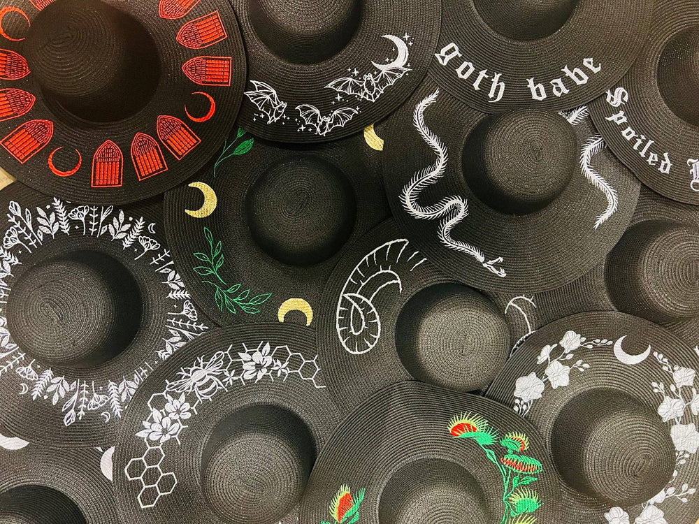 We are so excited for the Witchwood brand, new sun hats! Embroidered design. Huge sun shading brim. Size: 24" (but size is adjustable and can be sized down, inside the hat) Brim - 6" wide Hat Color - Black PLEASE NOTE - Due to the size of the brim on these hats, the brim may become curled/curved during shipping. A quick iron or steam to the brim will fix this.